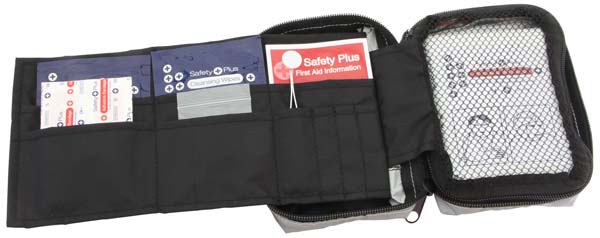 28 Piece Car First Aid Kit. A compact kit in a 420d Nylon bag with Reflective Safety Strips, ideal for use in the car, caravan or around the home. TGA Approved