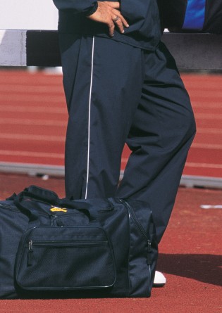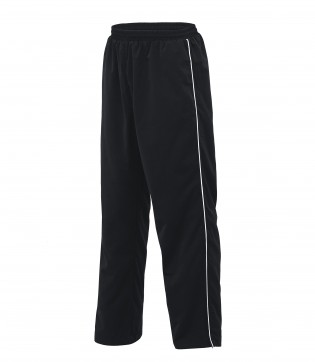 100% polyester microfibre | Classic fit | White piping along outseams | Straight leg | Zipper down leg with gusset enlarged hem opening | Onseam side pockets and zippered back pocket | Fully elasticated waist with dyed to match draw cord inside | Upper 2/3 lined with single jersey | Bottom 1/3 lined with polyester taffeta