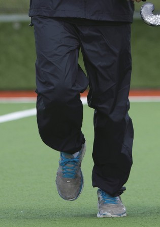 100% nylon taffeta | Showerproof | Fold away in self fabric pack | Fully elasticated waist with dyed to match draw cord inside | Upper 2/3 lined with polyester mesh | Bottom 1/3 lined with nylon taffeta | Zippered leg with 1/3 elasticated cuffs | Onseam side and zippered back pocket