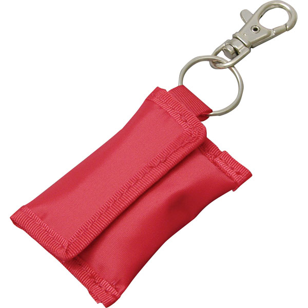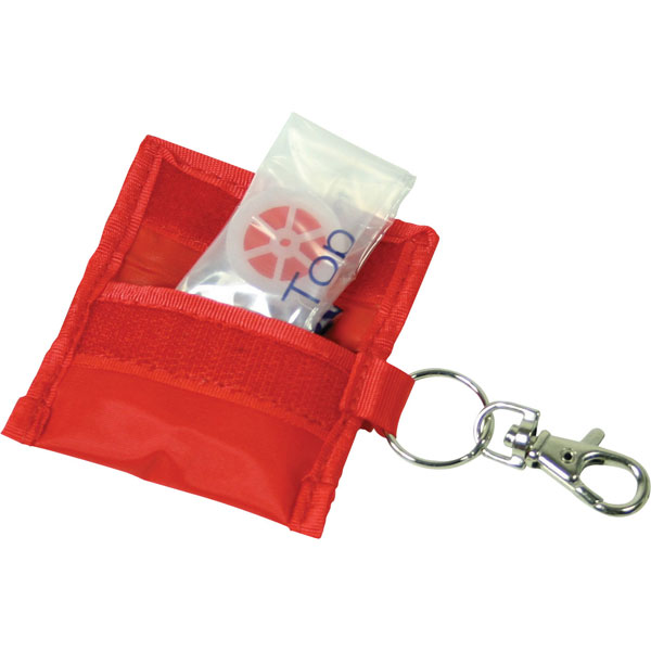 Premium single use mouth to mouth mask packed into nylon keyring pouch.