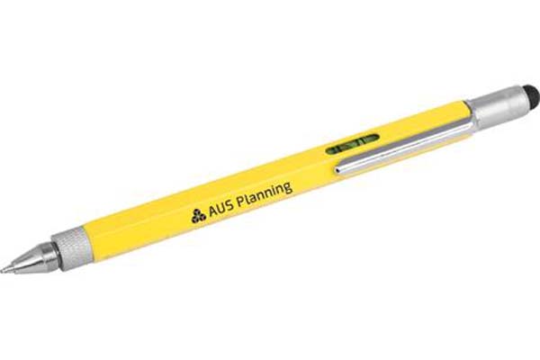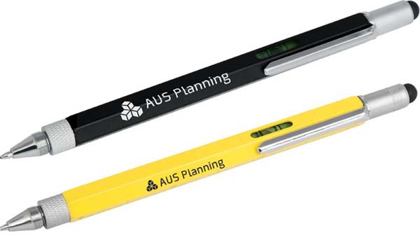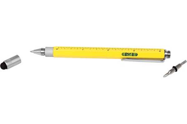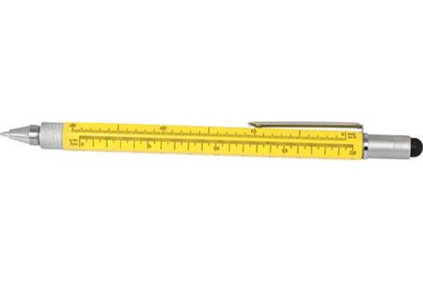 This top of the range 9-in-1 pocket tool incorporates a pen, stylus, 4 rulers, spirit level, phillips and flat edge screwdriver all in a useful stylus pen.