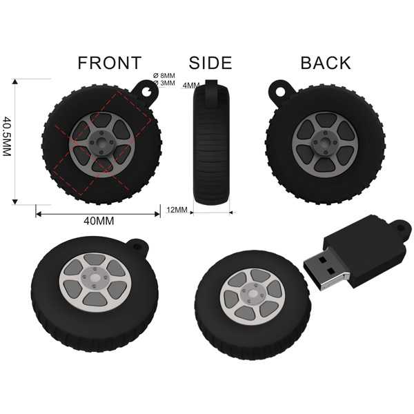 Tyre Shaped USB Flash Drive - 2Gb (N-PVCUSBTYRE-2GB)