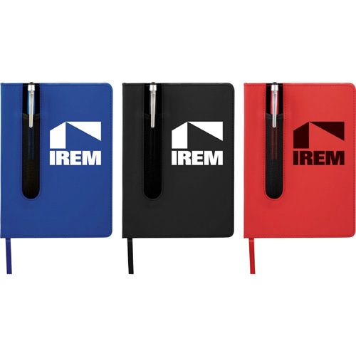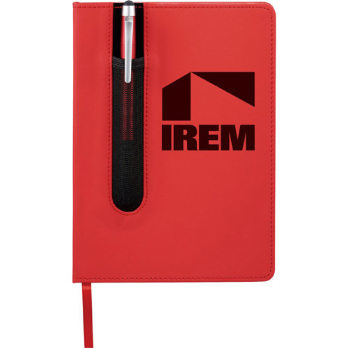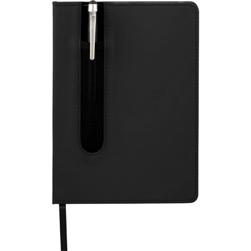 Valby Notebook with Pen-Stylus Bound notebook with unique pen sleeve. Includes a plastic pen-stylus and 80 ruled pages. Pen imprint not available. Pens packed separately.