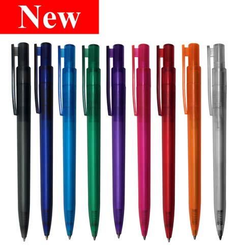 Colored Transparent Plastic Pen with Frosted Finishing.