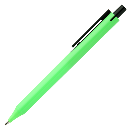 Simple Slim Design with Push Action Plastic Pen, Solid Black Push Button and Clip with Colored Barrel and Tip