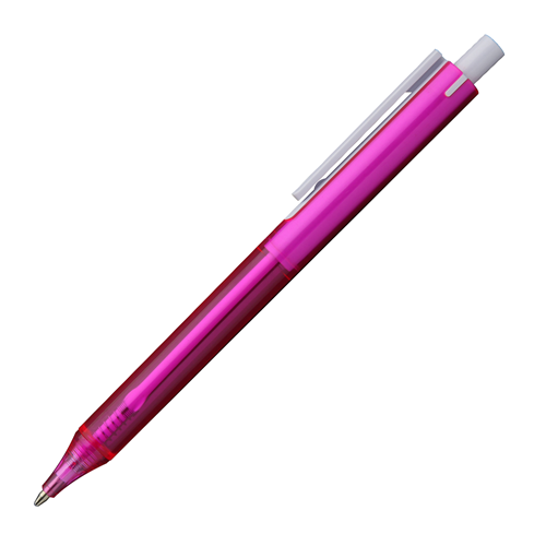 Simple Slim Design with Push Action Plastic Pen, Solid White Push Button and Clip with Colored Transparent Barrel and Tip