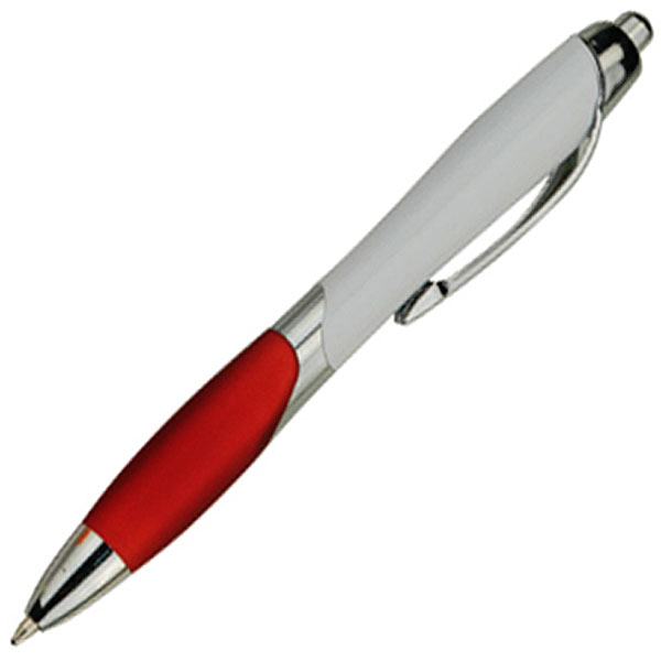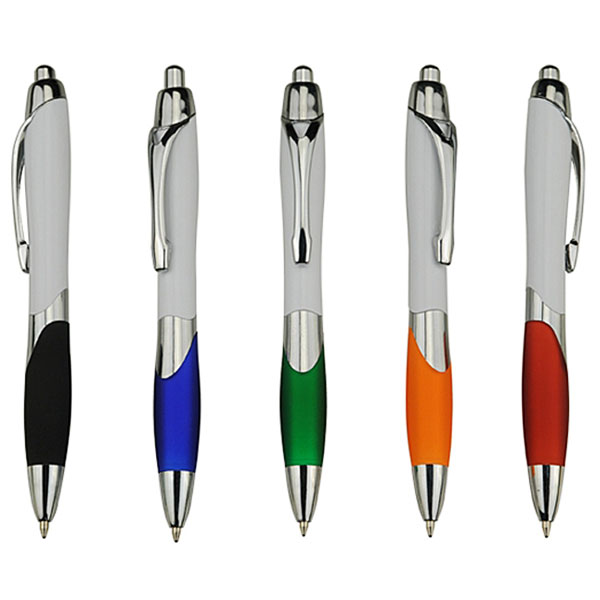 Click Action Plastic Pen, White Body, Colored Rubber Grip