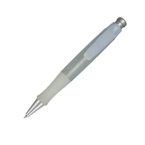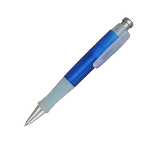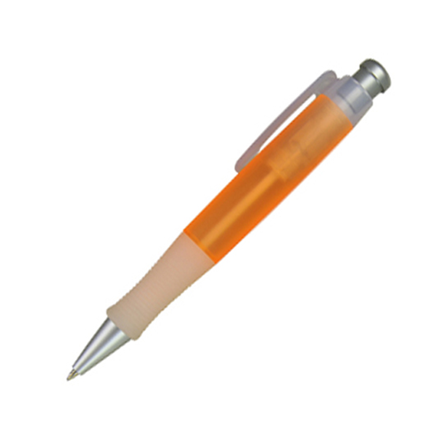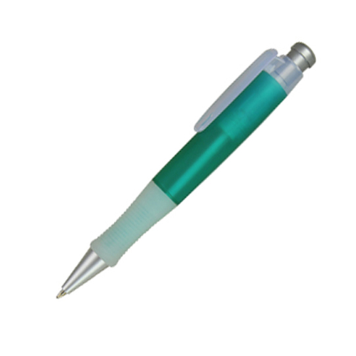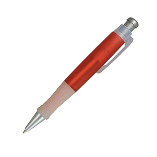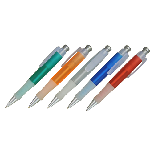 Click Action Plastic Pen, Translucent Colored Body with Clear Rubber Grip and Matte Silver Fittings