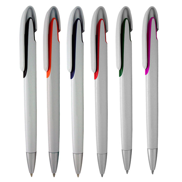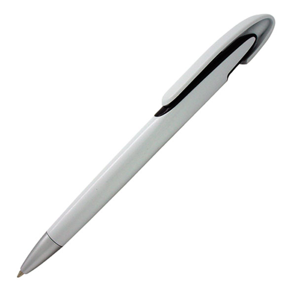Click Action plastic Ballpoint pens with Broad Clip for larger printing area, White Opaque Body and Clip