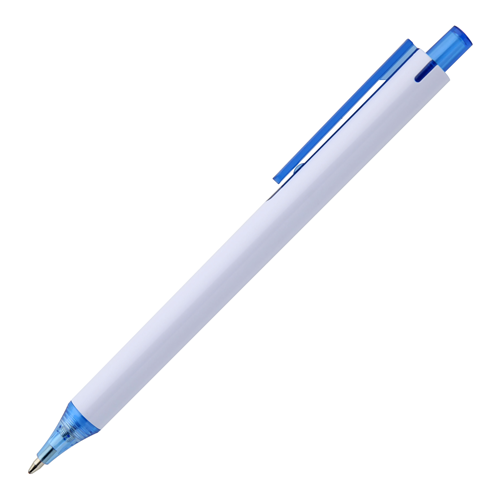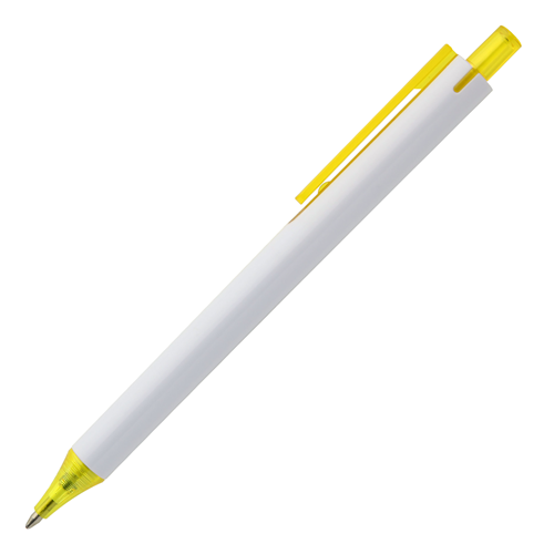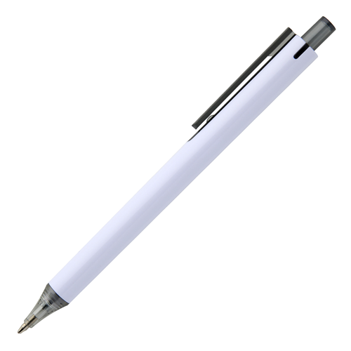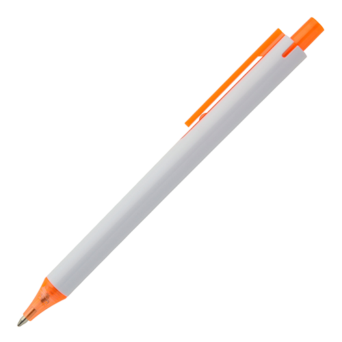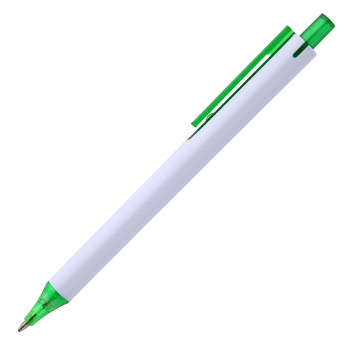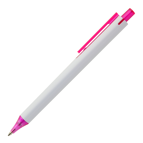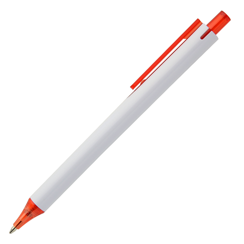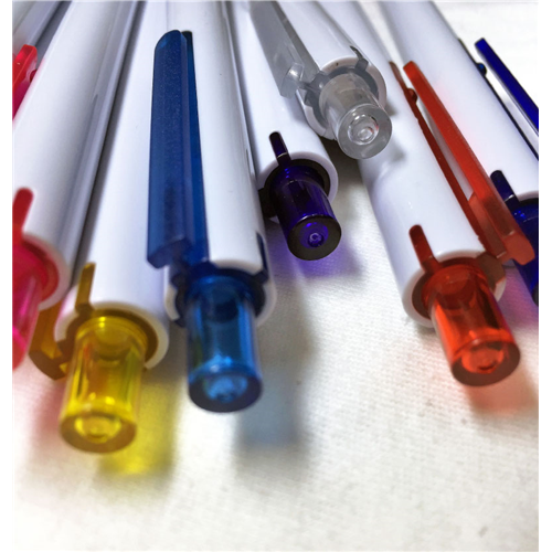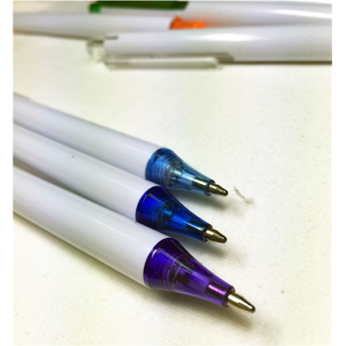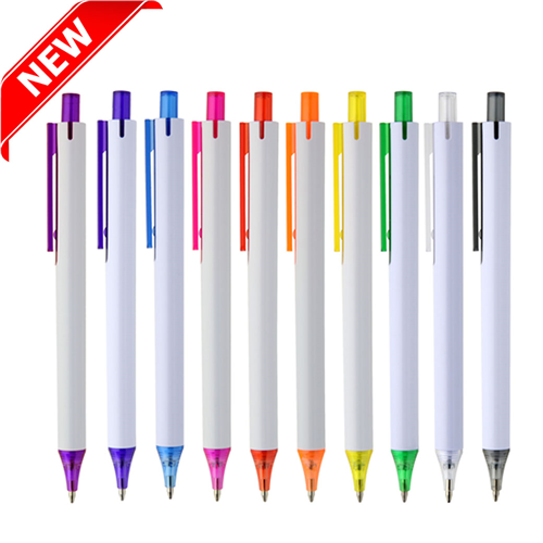 Simple Slim Design with Push Action Plastic Pen, Solid White Barrel with Colored Transparent Clip, Push Button and Tip