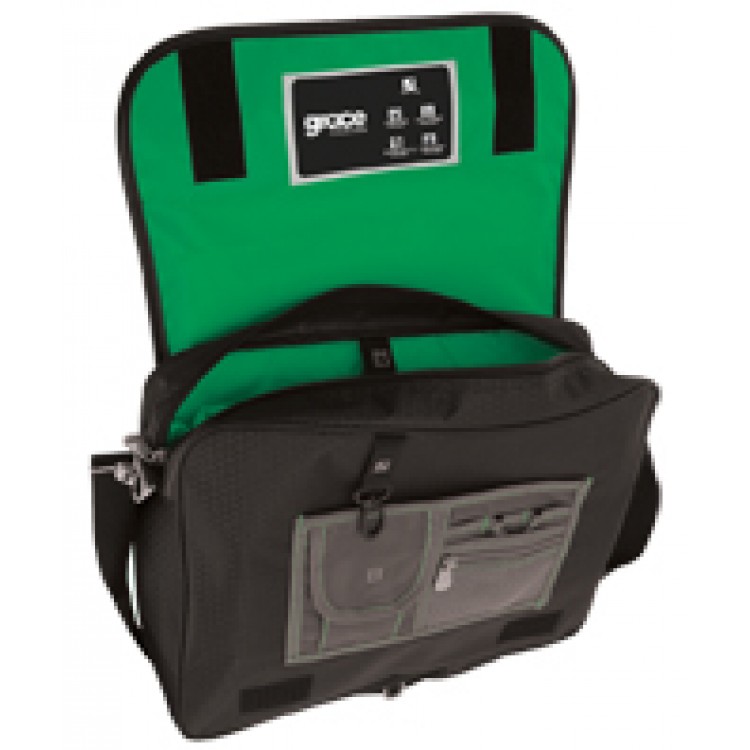 One open pocket and organiser under front flap with velcro closure