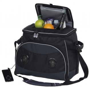 Front zippered pocket with built-in speakers and amplifier with MP3 player compatibility – Connects to your mobile music device (3 x AA batteries required not included)