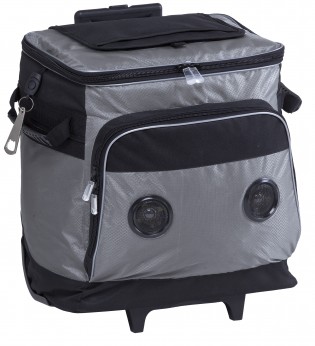Front zippered pocket with built-in speakers and amplifier with MP3 player compatibility – Connects to your mobile music device (3 x AA batteries required not included)