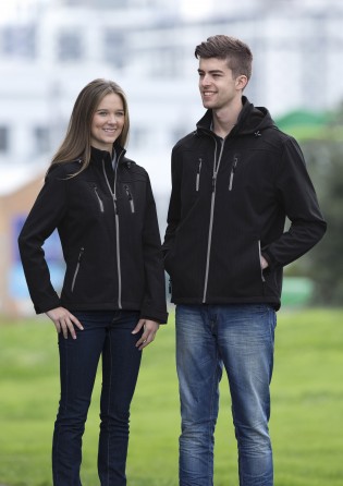 100% polyester end on end softshell bonded with anti-pill microfleece | Wind resistant | breathable | showerproof | water repellant rating 5000mm | Tapered fit | Articulated hood with elastic draw cord | High-zip plaquet with rubber puller and internal storm flap | Adjustable Velcro cuffs | Two welded zippered chest pockets | Two zippered side pockets | Elastic draw cord on hem | Shoulder panel detailing | Front lined with 100% polyester mesh | Zippered branding access | Gear For Life side pip | Sizes XXS – XS slightly tapered fit for women