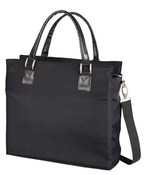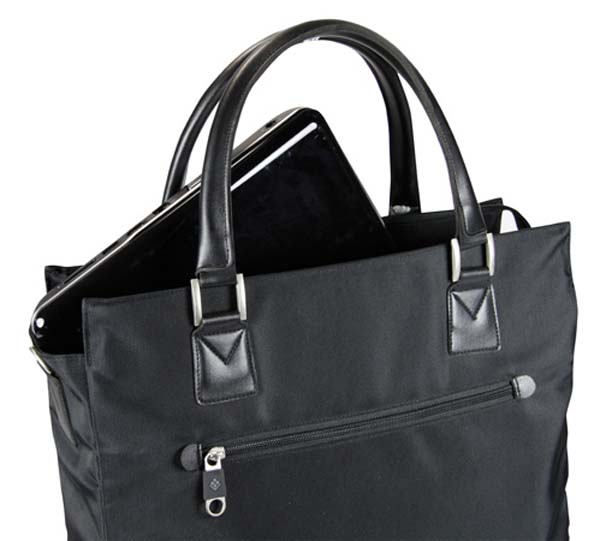Stylish ladies laptop bag with matt silver fittings and leather look trims