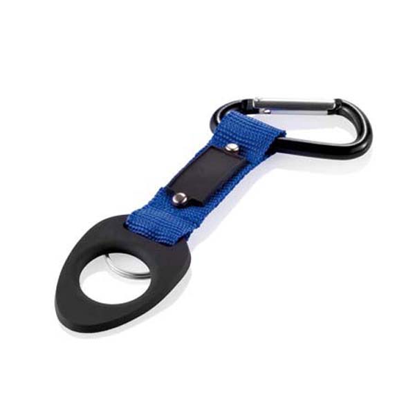 Black anodized carabiner with silver split keyring and rubber bottle holder