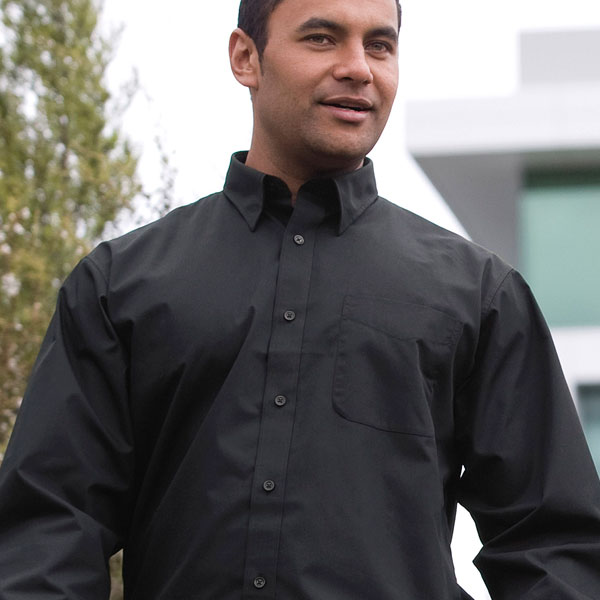 Ladies: 65% polyester 35% cotton poplin | Classic fit | One piece collar | Concealed plaquet | Shaped body detailing front and back | Long sleeves | Double buttoned cuffs | Contoured hemline.