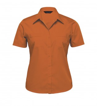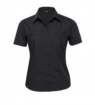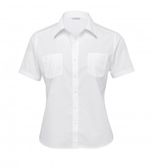 Womens: 65% polyester 35% cotton poplin treated with DuPont™ TeflonĀ® | Classic fit | Fashion collar | Shaped body detailing front and back | Two breast pockets | Short sleeves | Contoured hemline
