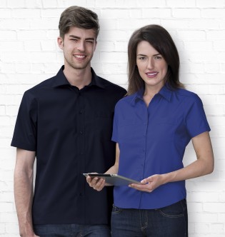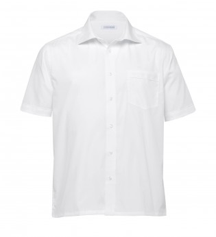 Mens: 65% polyester 35% cotton poplin treated with DuPont™ TeflonĀ® | Tapered fit | Fashion collar | Single breast pocket | Short sleeves