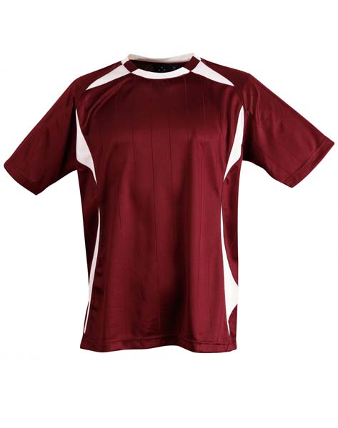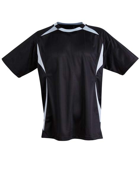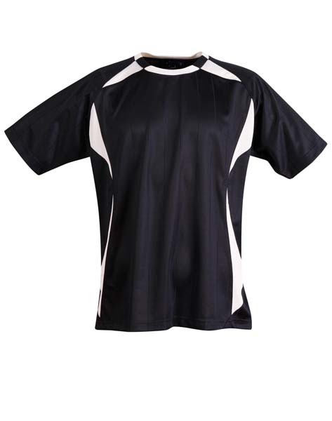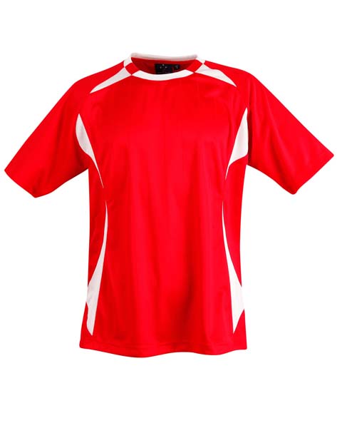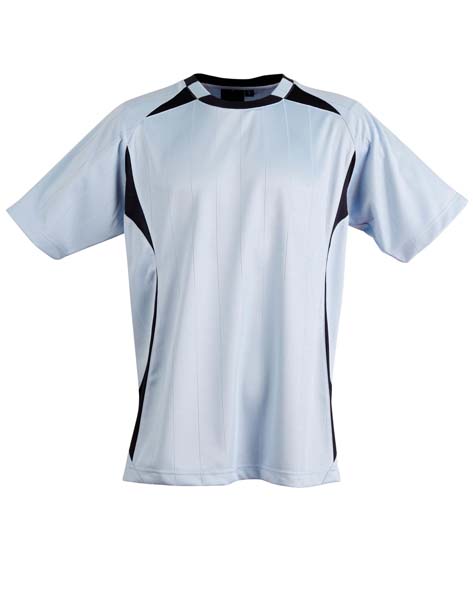 Description :Wicks moisture away from the body. Lap-over collar. Contrast colour. Raglan sleeves. Double needle hemmed sleeves and bottom.